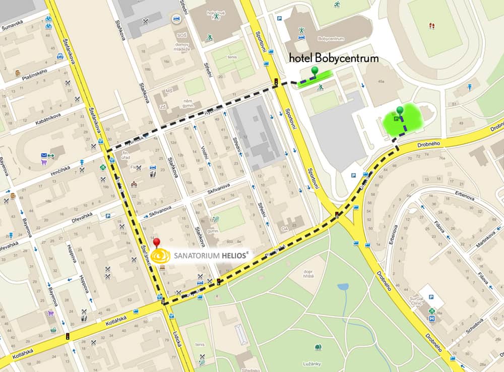 Bạn có thể tìm trung tâm Sanatorium Helios Brno theo chỉ dẫn dưới đây: